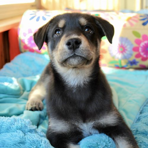 During the frigid snow storm at the end of December 8 puppies were born to a brave and sweet mama out in the storm. Mama Alisa and another dog spooned and protected her babies until they were found. Seven babies survived and the little family came into rescue. Mama Alisa was a fantastic mother and, along with their dedicated foster, the babies thrived and grew - turning into the fantastic puppies they are now!