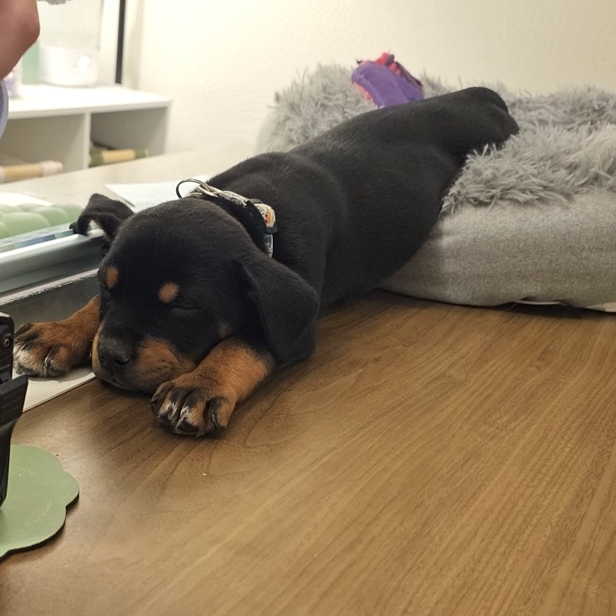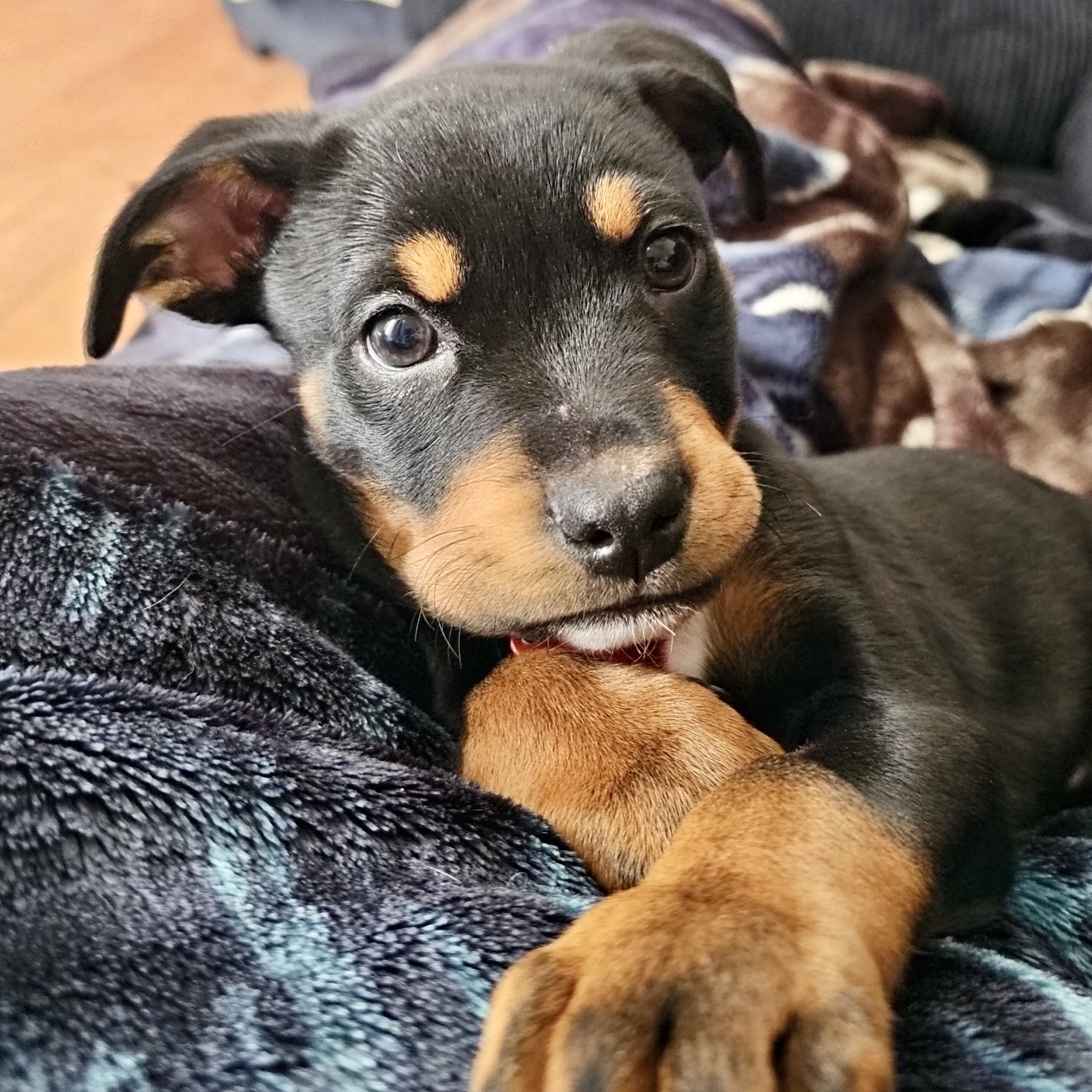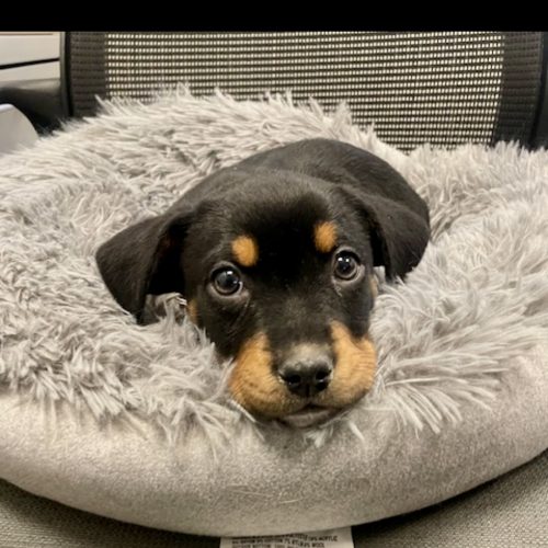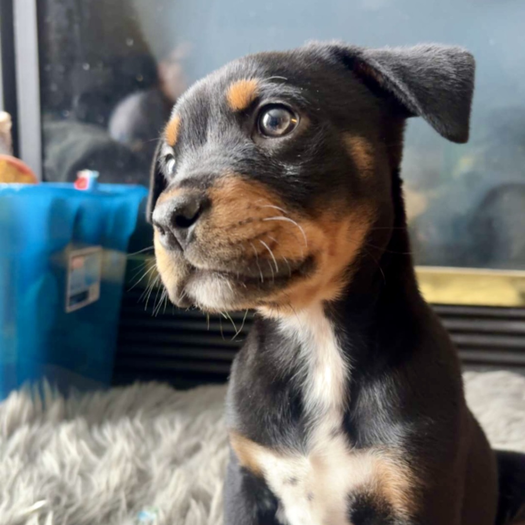 Currently I am 11 weeks old and I am living with 2 cats, 1 big ol dog and 3 humans. I am loving the cats and my foster brother is warming up to me even though he is HUGE. My foster mom takes me to work with her at a place with alot of older people and I love all of the attention.