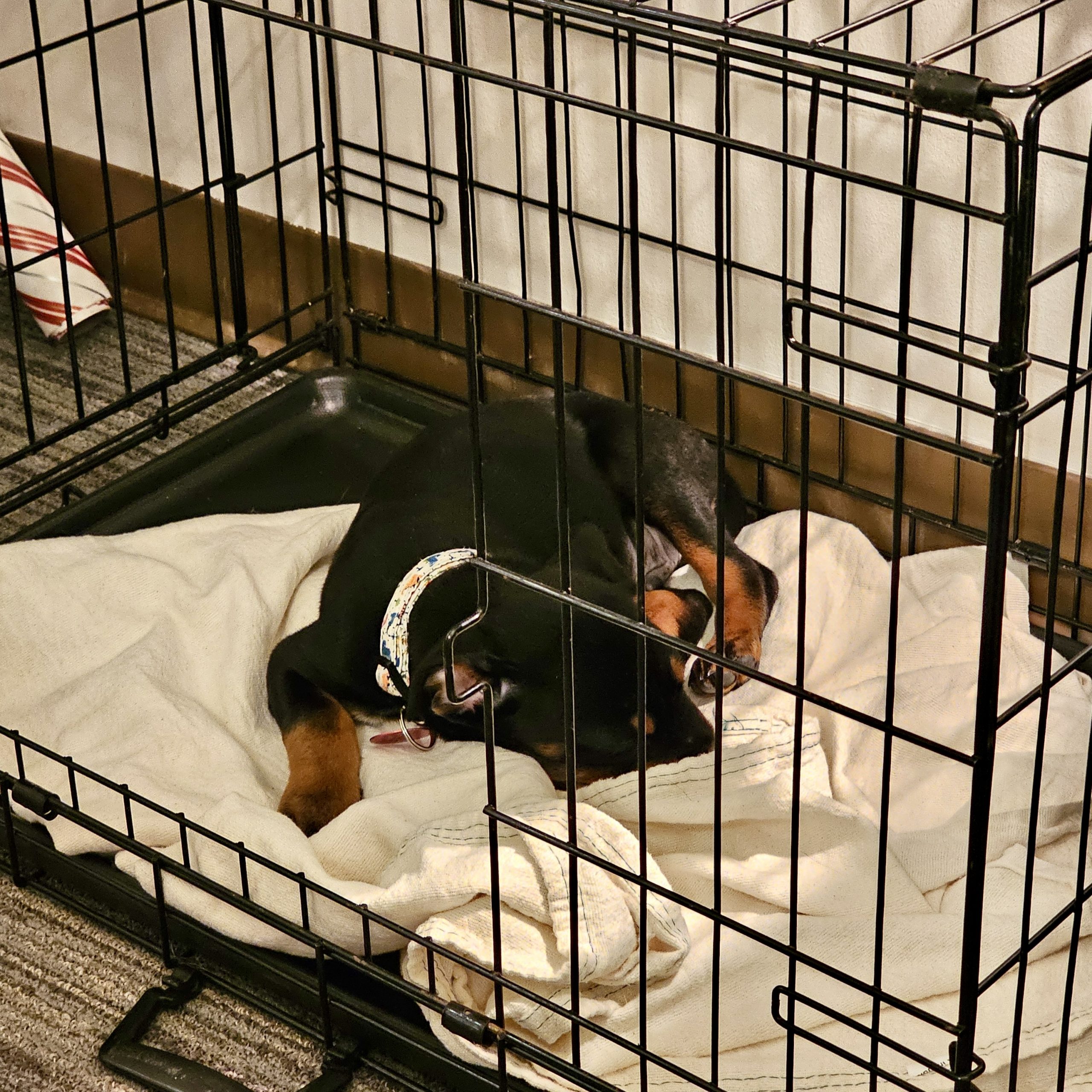 I am doing great on a leash, but still a little afraid of loud noises, and squirrels (they are scary). The Going potty outside is a work in progress, but my mom is saying I am a good boy a lot so I think that is a good thing. I am working on the crate thing, and not being able to see her all the time, I am getting way better at it....I love to cuddle, matter of fact that is the best thing I do. We are working on this thing called "sit and wait"....don't like it much, but when my foster brother does it, he gets food so i just do it when he does. I am great in the car, and love going for rides. Not sure what else to tell you, I will just let my pictures speak for themselves and hope to hear from you all soon!