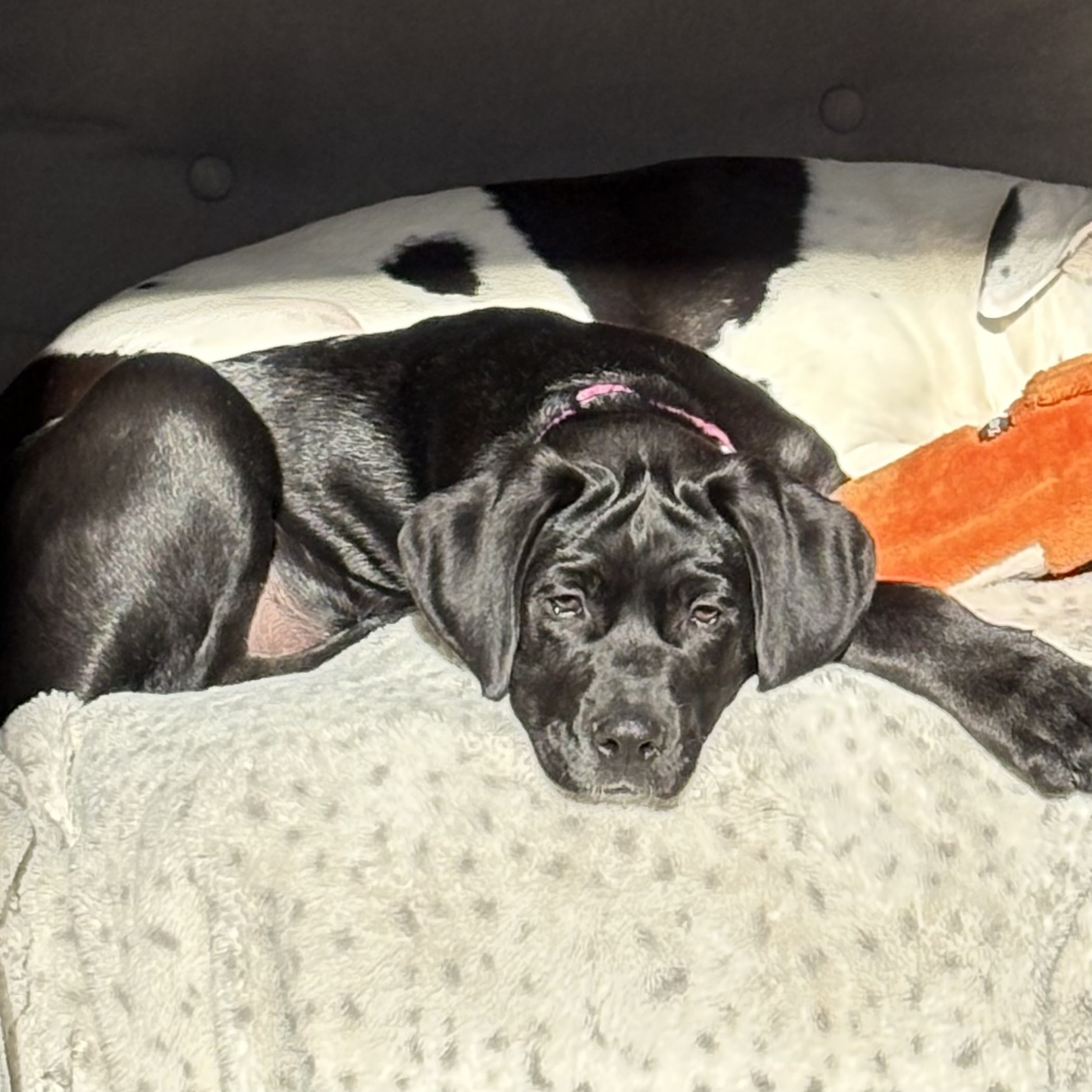 Cuddles: When play time is over, Bonnie is all about the affection. She loves to cuddle up with other dogs and soak up all the love from her humans.