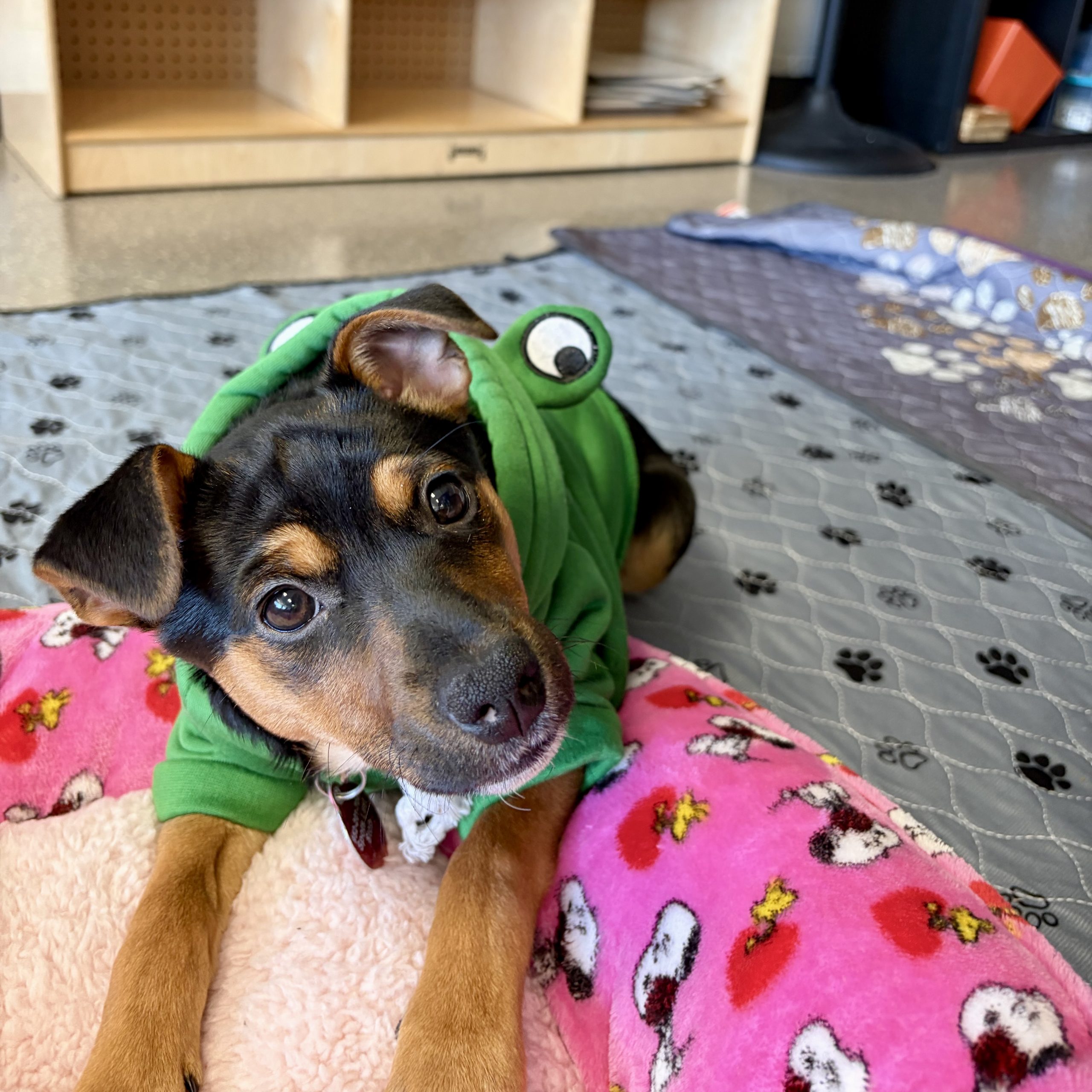 Corita is super smart and is quickly learning how to live in a home. She’s doing great with potty training and rarely has accidents inside provided you can quickly get her outside to go potty when it’s time for her to go! Corita is making great progress in crate training. She can consistently keep her crate clean and dry overnight, and is working on staying crated during the day. Corita is also getting better at going for walks on leash and is highly responsive to praise (and treats) during inside and outside training times. Loving Corita will surely brighten your days and bring joy to your heart. A balanced lifestyle and environment consisting of high stimulation coupled with chill vibes will help her continue to thrive. Will you be the lucky one who gets to give Corita a forever family and home?