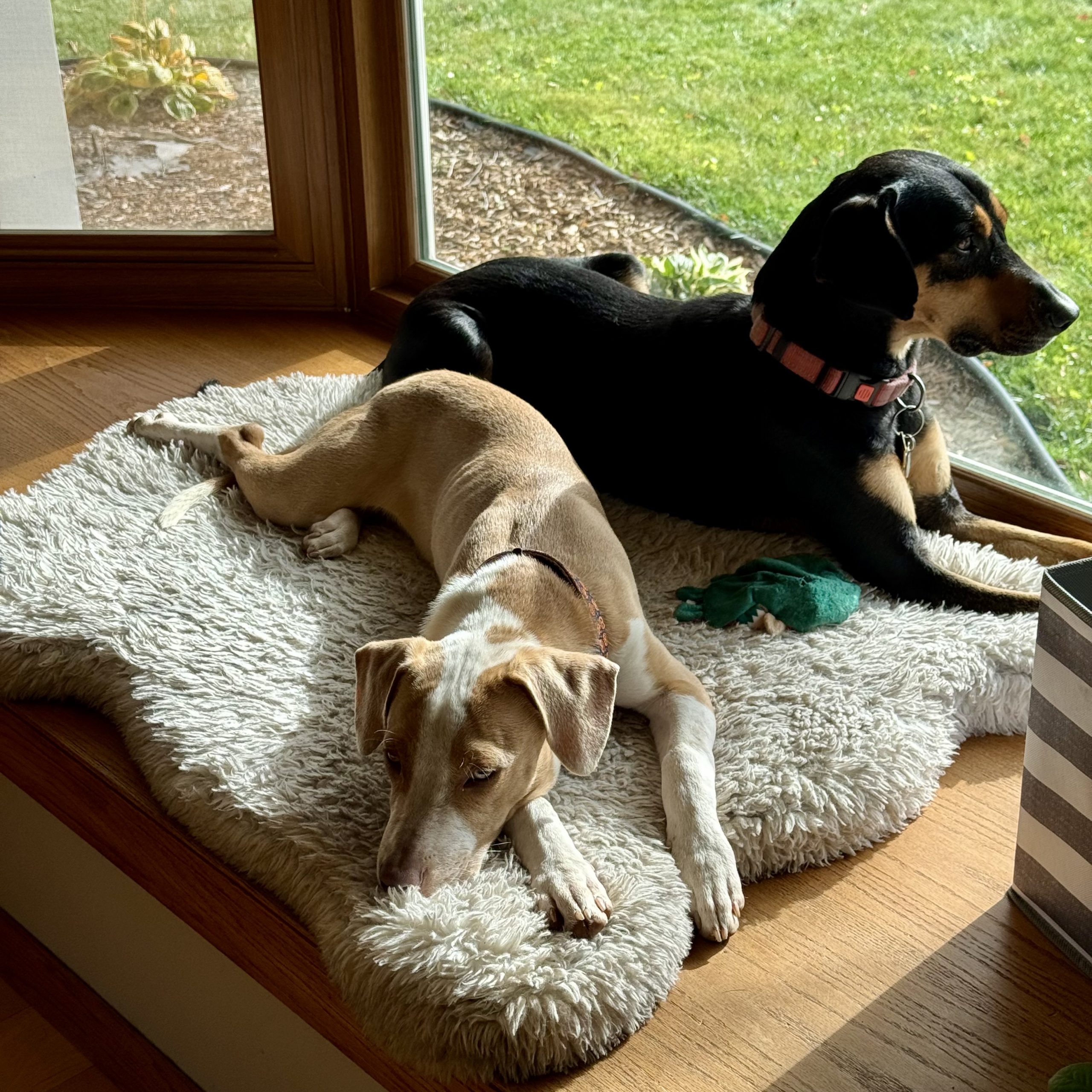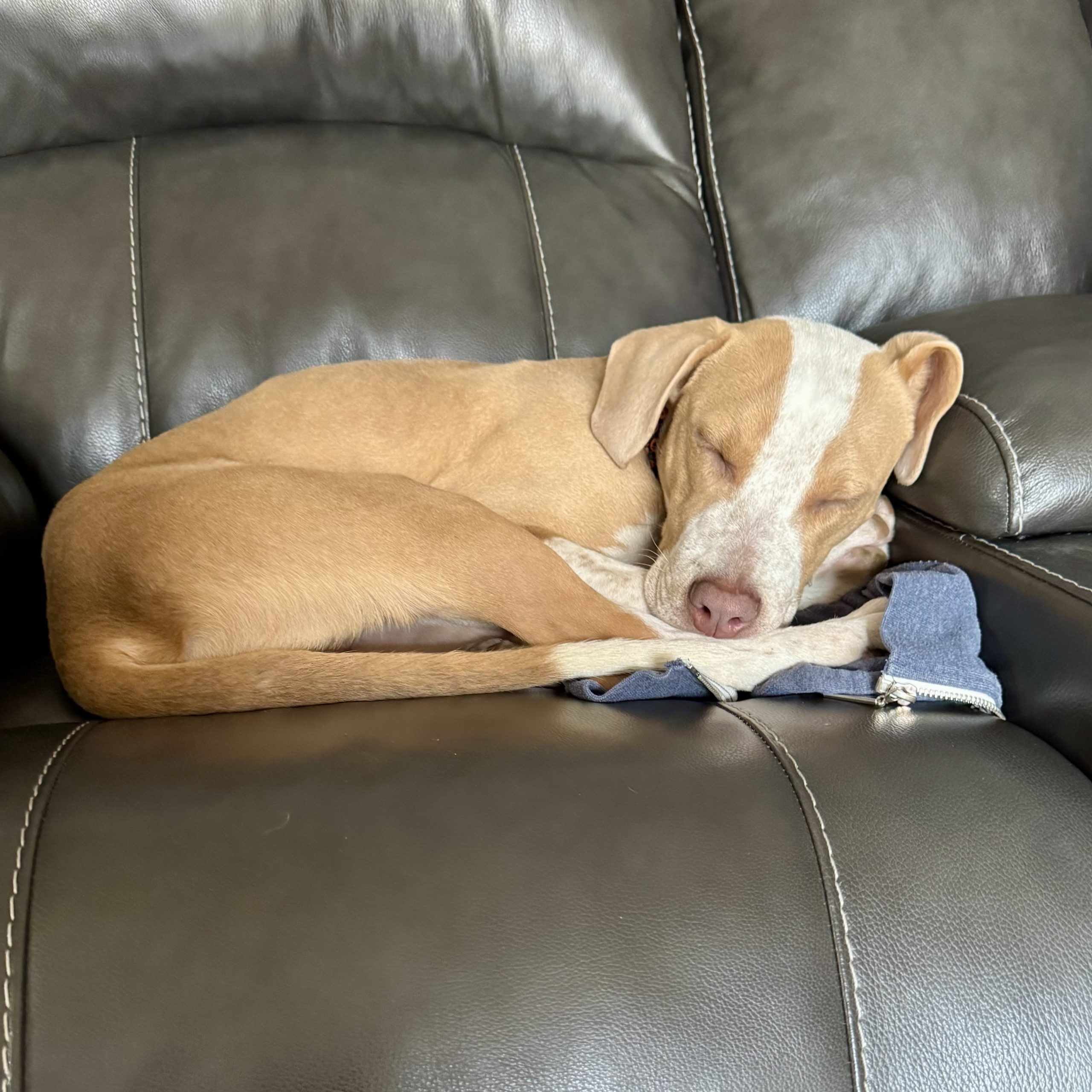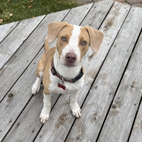 Duke is very handsome and a hoot. He gets very excited and wiggly when you first meet him but he settles down quickly. Duke is smart, curious, friendly and playful. He is extremely snuggly but is also content to lie by himself. Duke loves to watch the squirrels from inside the house. He will try and chase them on a walk but is easily redirected back to the walk. He walks well on a leash and is excited to have additional training on pulling. Duke LOVES to play outside with his foster’s resident dogs- play, snuggle, play, snuggle! Duke is food motivated; he has mastered sitting and is learning to come when called, wait, and stay. He is mastering these basic commands very quickly-Duke will be a star in any training class! If you are looking for a fun loving, snuggly adventure, walking, happy pup- Duke is the one!