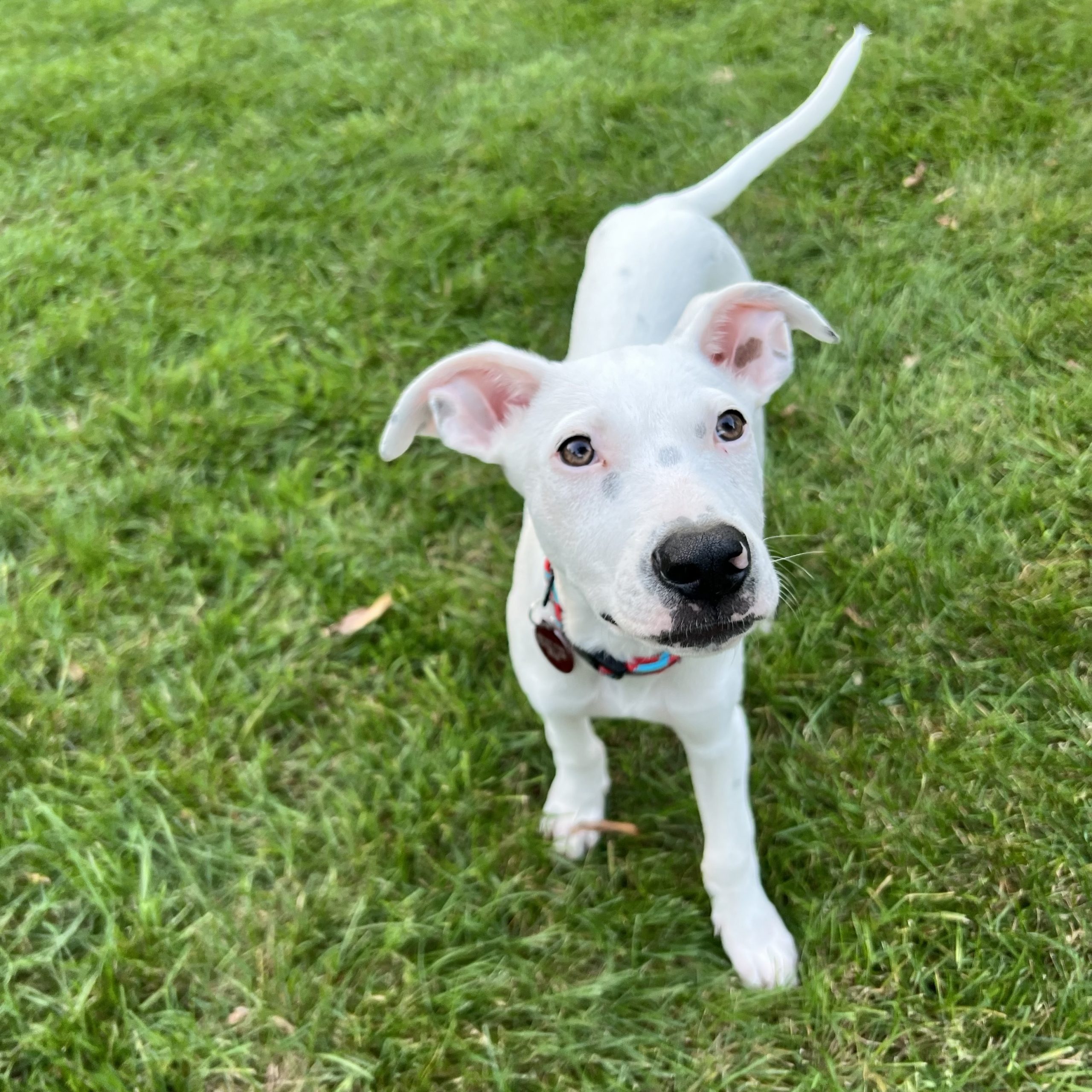 My name is Jagger and I am looking for my forever home! I am a very happy and playful pup and love to explore out in the yard. I really like to be with my people and I am learning to be independent and entertain myself. I am hard of hearing and my foster parents are teaching me hand signals. Because of my hearing, I depend on my foster canine siblings to show me the way thus I do need another dog in the home. I love going on walks and I do really well with the kids I’ve met the neighborhood. Kennel training and potty training is going great. Let’s meet up so I can show you how sweet and smart I am and see if we are a match!