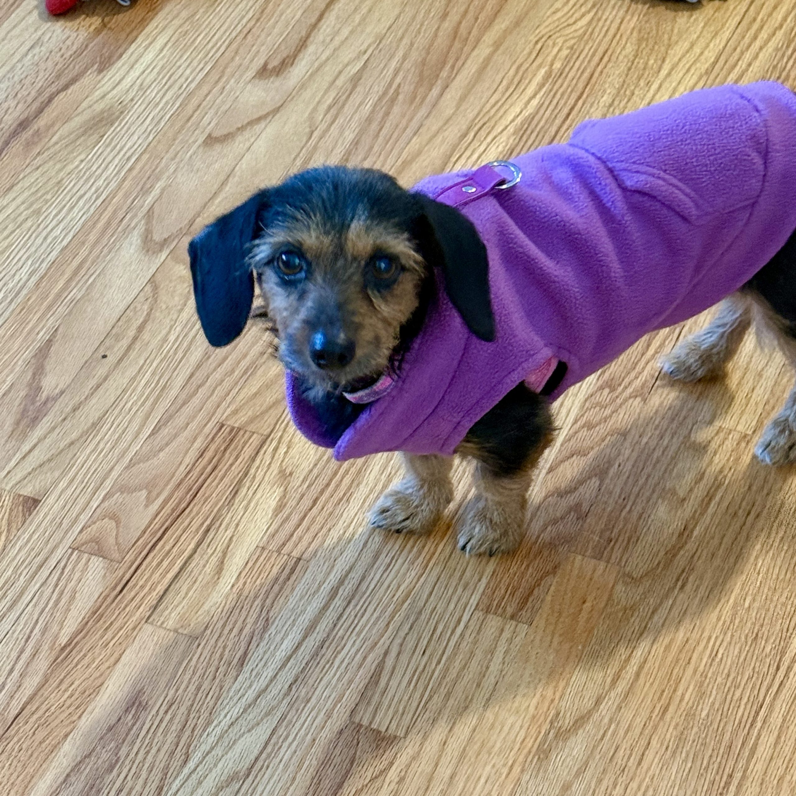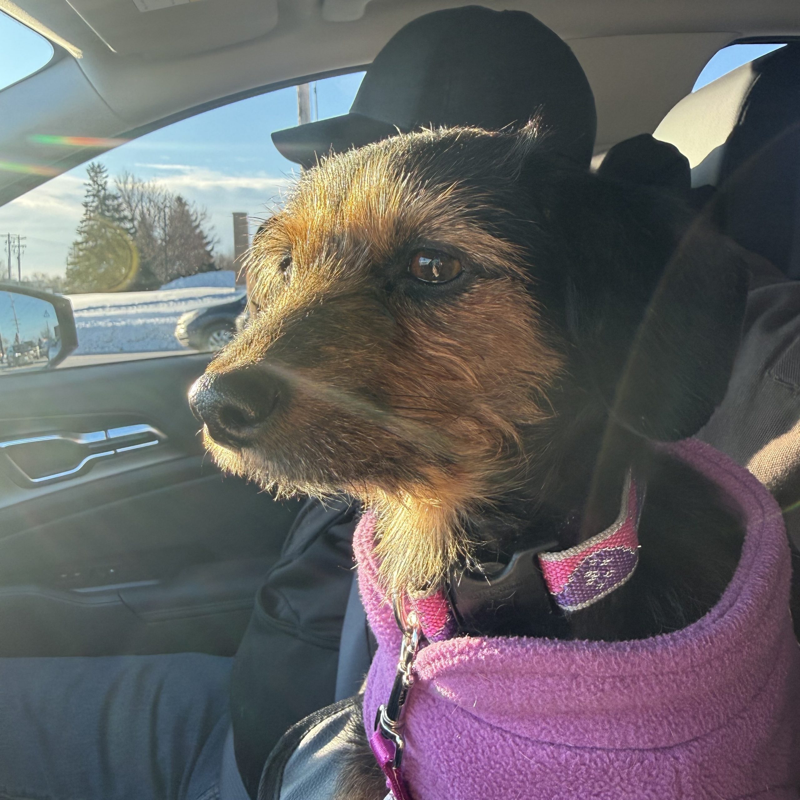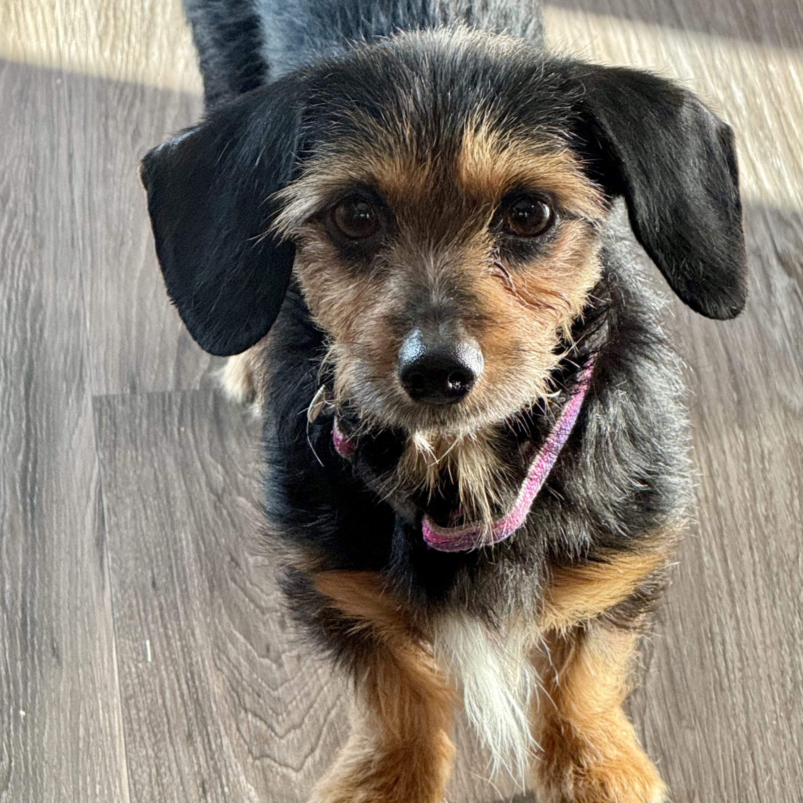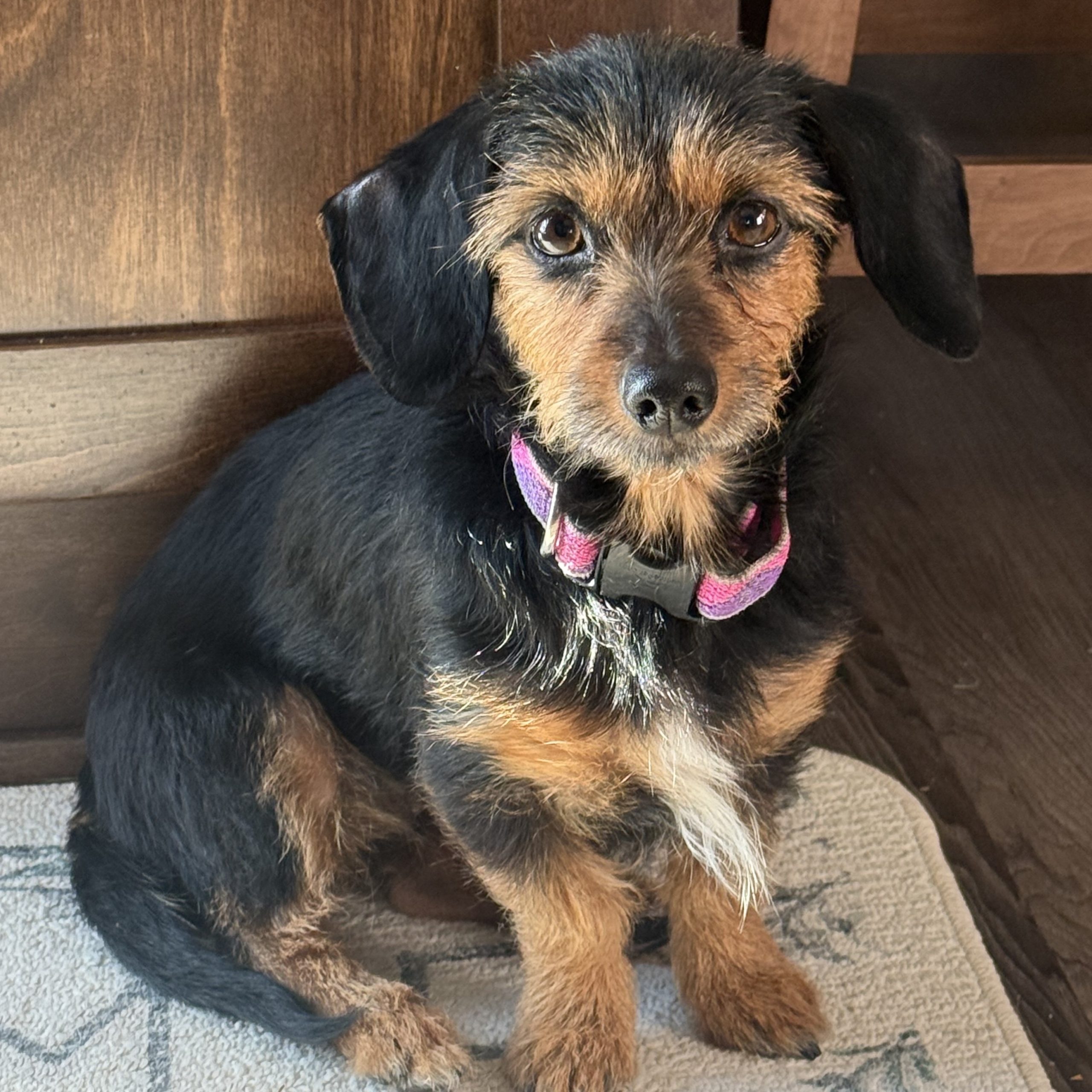 Hello, I’m JoJo and I am about 2.5 years old. I arrived in Minnesota on December 13, all the way from Oklahoma. I’ve never experienced snow and cold weather before, but it didn’t bother me at all. I ran through the snow, which was surprisingly deep because I have short legs. People say I’m probably a dachshund mix, which explains my short legs.