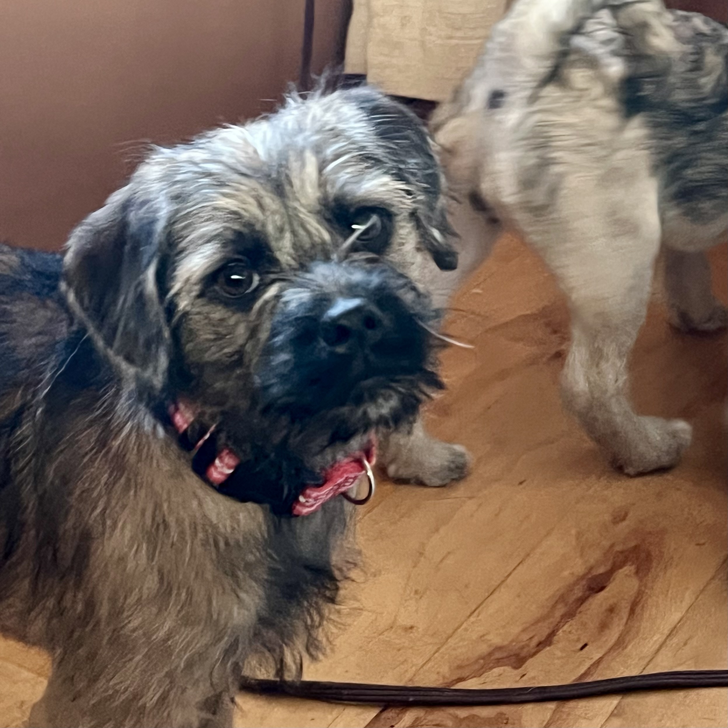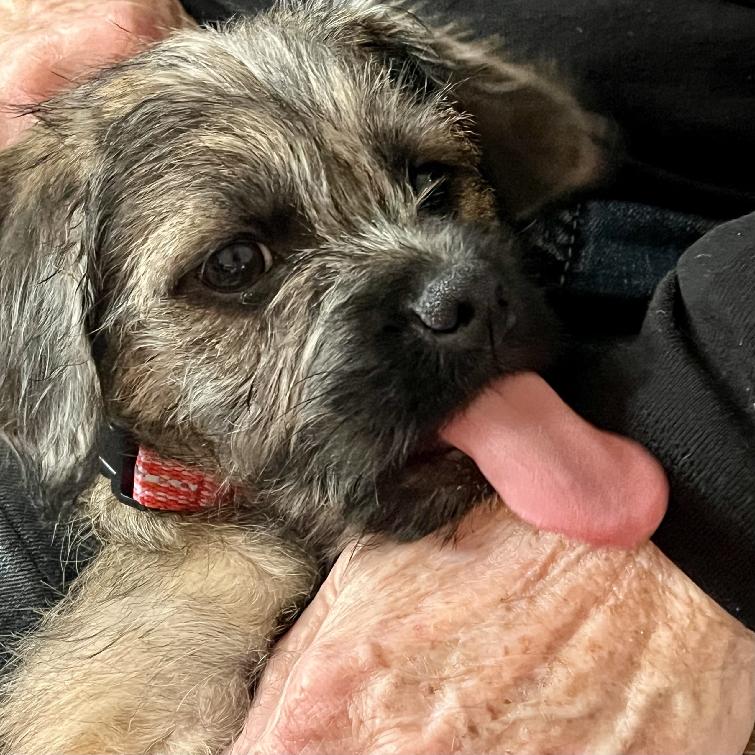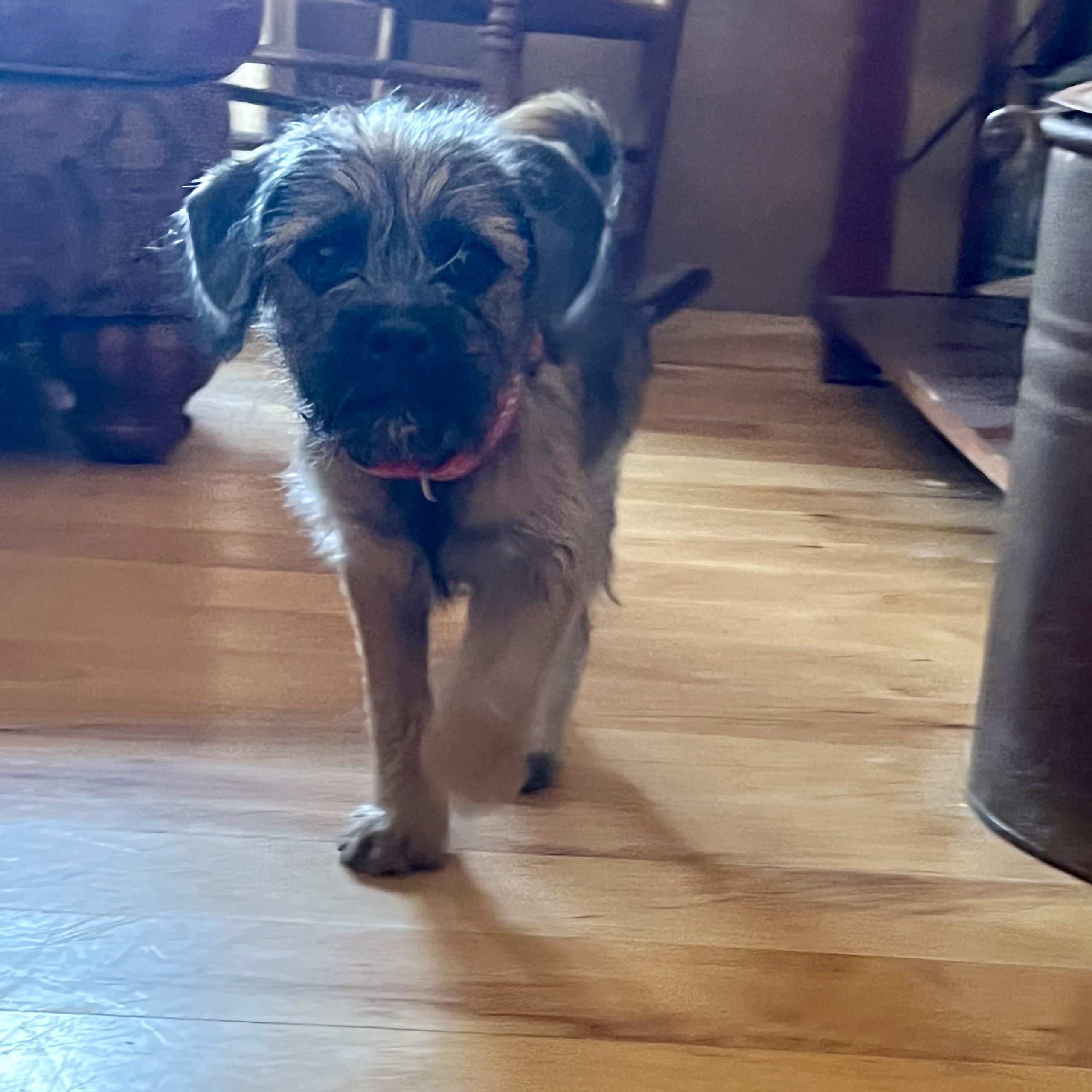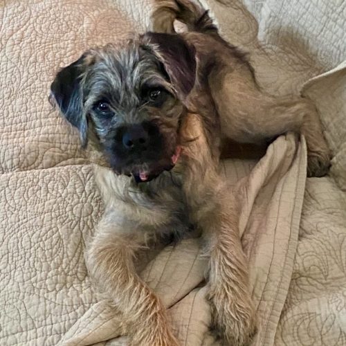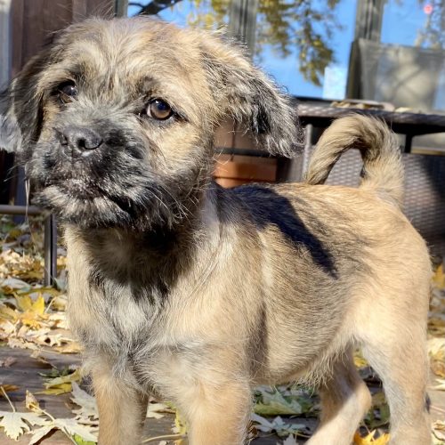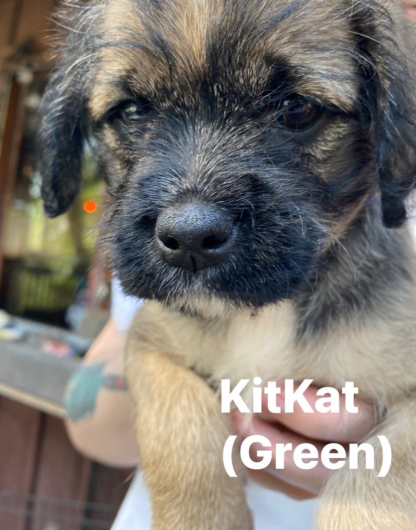KitKat is an easy going happy baby girl! She is social, friendly, playful, chill and affectionate. KitKat is part of a litter of 5 baby girls that were surrendered to rescue as an unplanned litter. Parents are a pug and a doodle- the girls are most likely going to be a small medium size. Since in rescue they have been exposed to people, sounds and all the things! Kit Kat loves to romp around, play and then snuggle with her sisters or on a lap. If you are looking for a sweet, cheerful, playful and darling pup- KitKat is your girl.