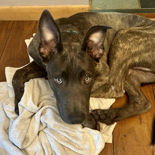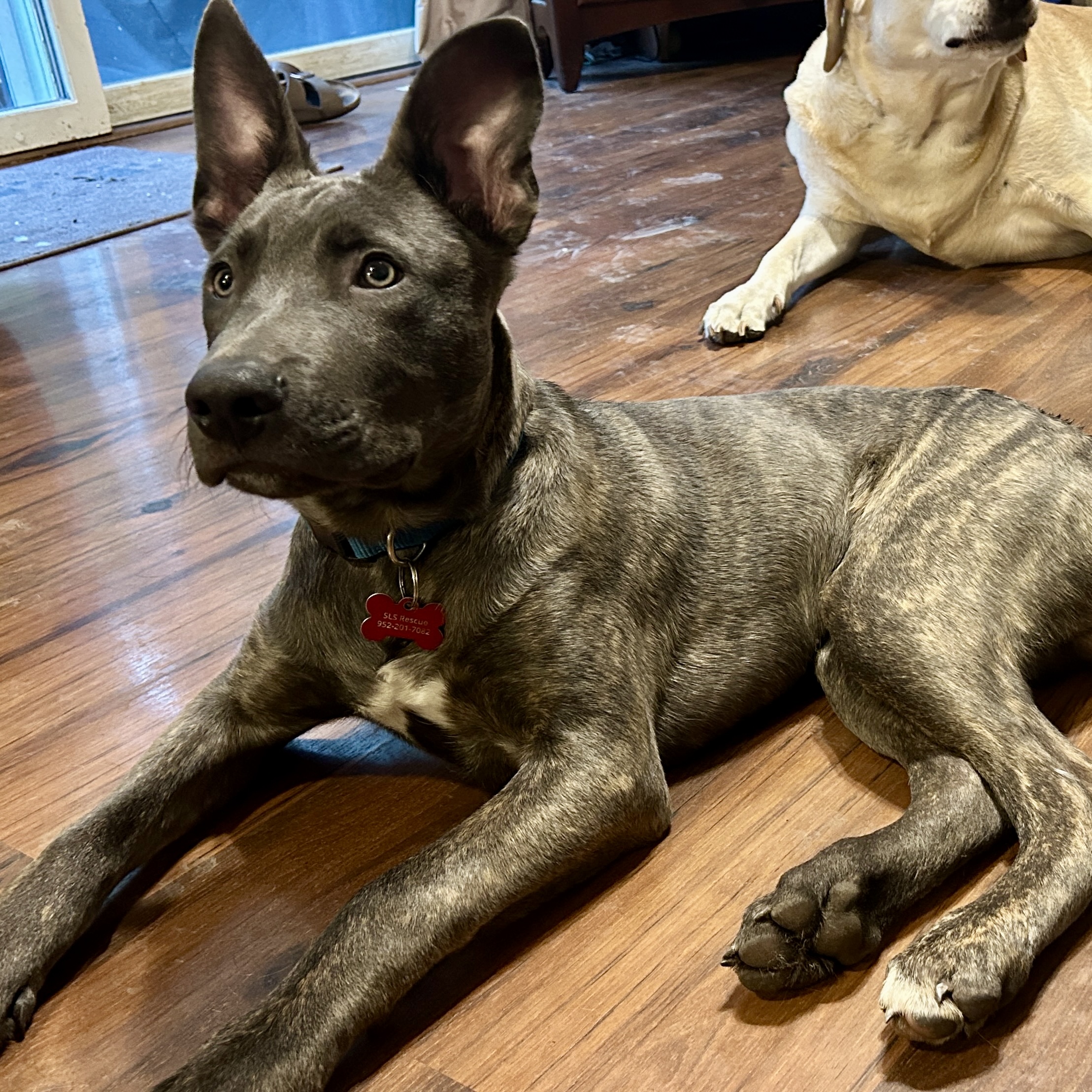 Are you looking to find your best friend? Well look no further! MIshka is smart, playful, and affectionate but beyond that, he is simply gorgeous! Piercing blue eyes, a beautiful gray coat and ears for days! He happily walks into his crate and sleeps all night without a peep. Running errands during the day? Mishka will take a rest in his crate or go with you! Mishka is excited to meet all people and dogs. Mishka is learning to walk on a leash and though his path may not always be straight, he doesn't pull and walks calmly. Mishka is doing great at potty training. He hasn't mastered telling you that he needs to go out, but with frequent breaks he has been accident free in the house. He enjoys all toys and chew bones- a true puppy! After playing hard Mishka is ready to curl up next to his people and snuggle in for a rest. Mishka is ready to find his forever home!