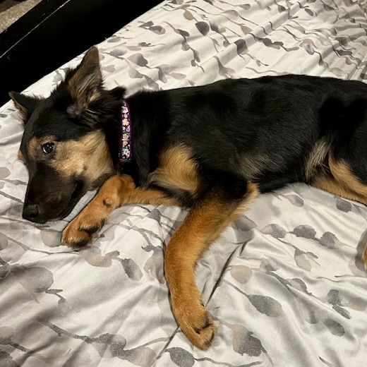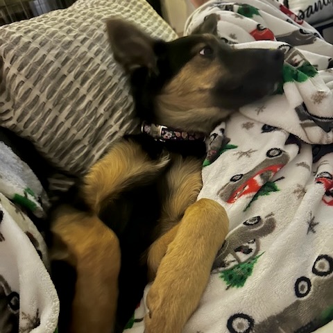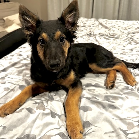 Nalu is about 4 months old, approx 18lbs (working on gaining a little weight) mom was Kelpie and probably mixed with some Shepherd. Out of the 7 siblings, Nalu has the cutest ears! She is working on kennel training (probably not a good fit for someone that is gone a lot), doing well at potty training, and is great on a leash. Nalu does great with the resident dogs and is still learning how to be an independent puppy. She does learn from other dogs so a home with another dog would be great or doggie daycare and socialization plans are a must.