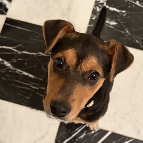 Coming into a room with Nelson in it is the best! He greets you with his wagging white-tipped tail and happy feet.