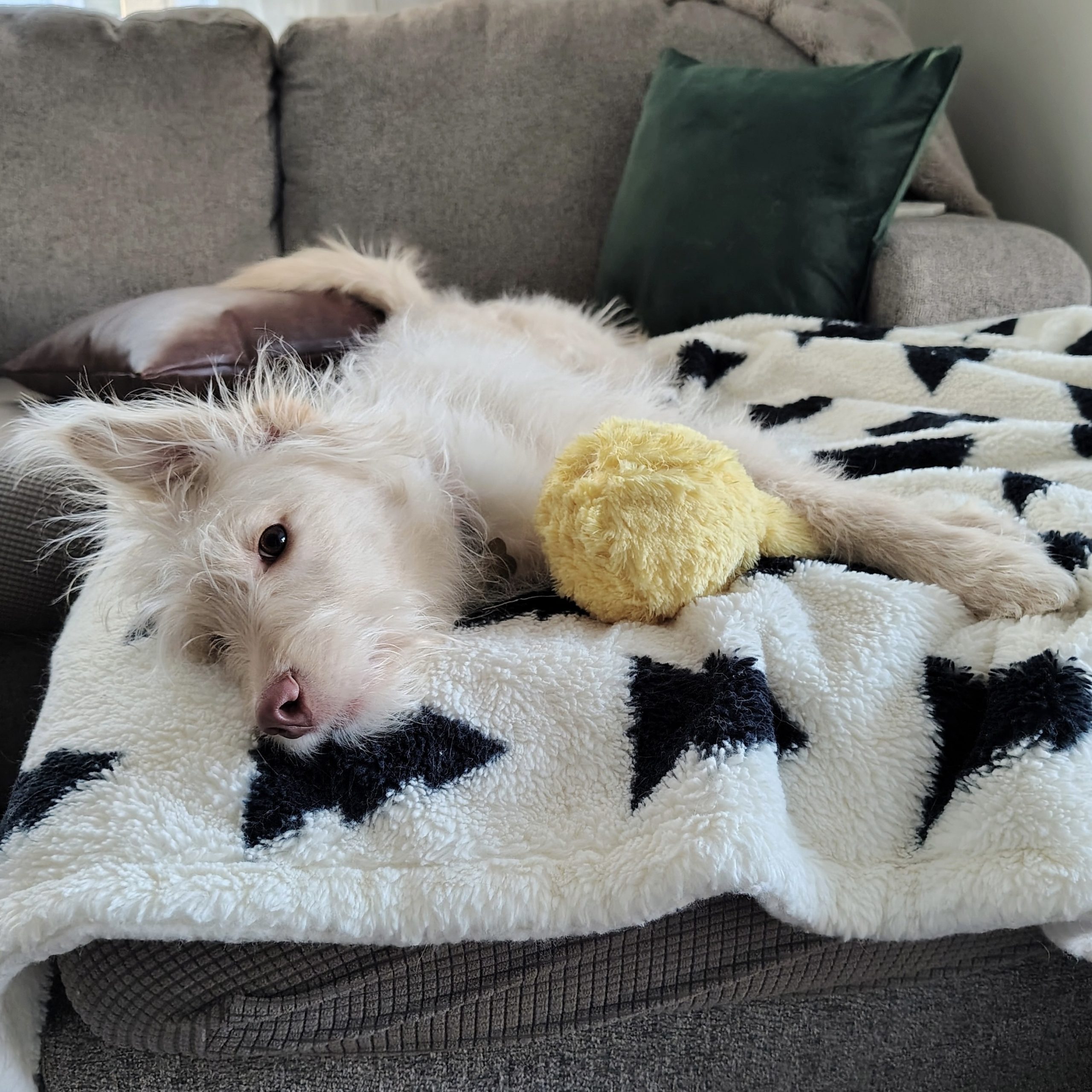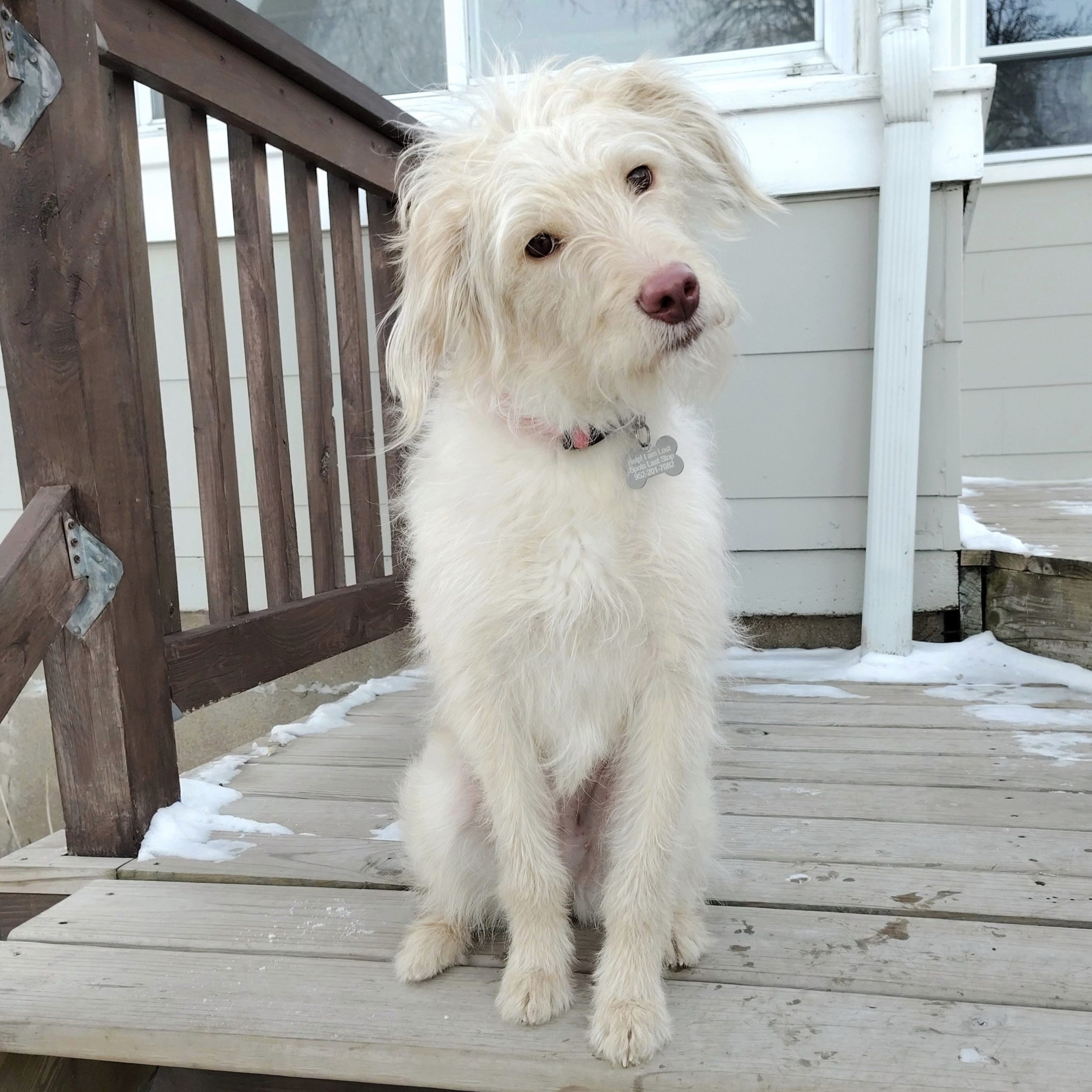 Pearl can be scared at first, and would require a canine friend to help her continue to learn how fun life can be as a family pet. She is also currently being fostered with 3 cats, 1 senior and 2 younger, and she is great with all. Pearl sleep in her kennel at night and is wonderful at running outside to do her business, get her wiggles out, eat some snow, then runs straight back to the door to come in! Since new places can be scary, a fenced yard would be best for her to have a nice safe place to run and potty. Pearl would also acclimate better to a quieter home at first, and would do best with only older children.
