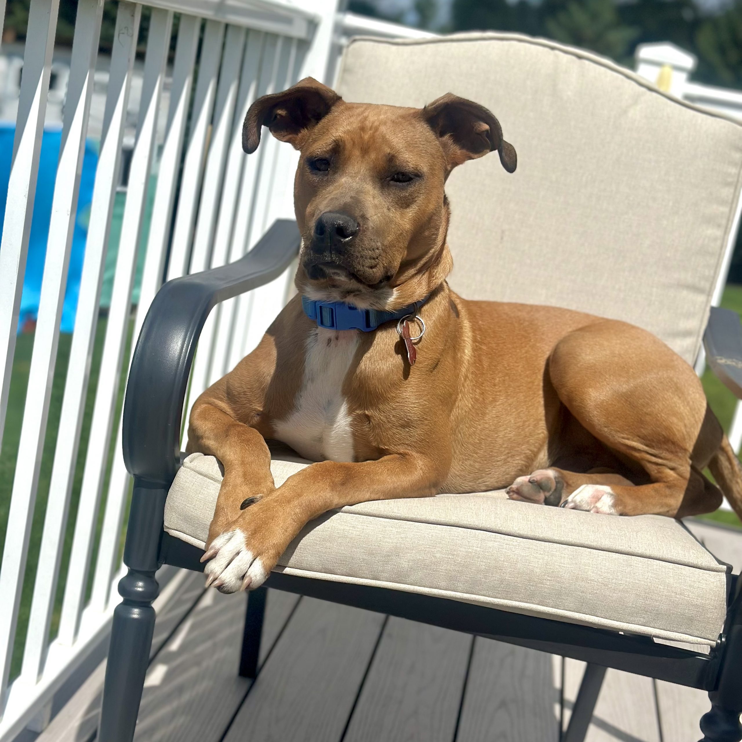 Things Russ likes to do in his free time: One of Russ’s favorite pastimes is sitting out in the sun, bird watching and sniffing the perimeter of the yard. He also enjoys exercise (walks, hikes runs), playing with tennis balls, and chewing on bones and checking out the world from the front window.