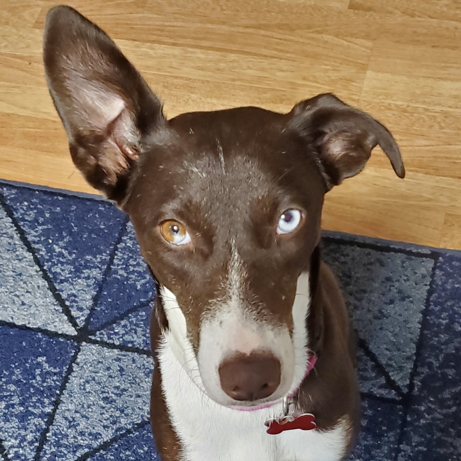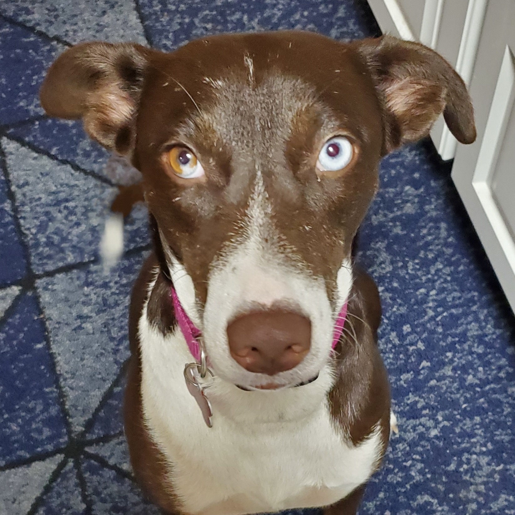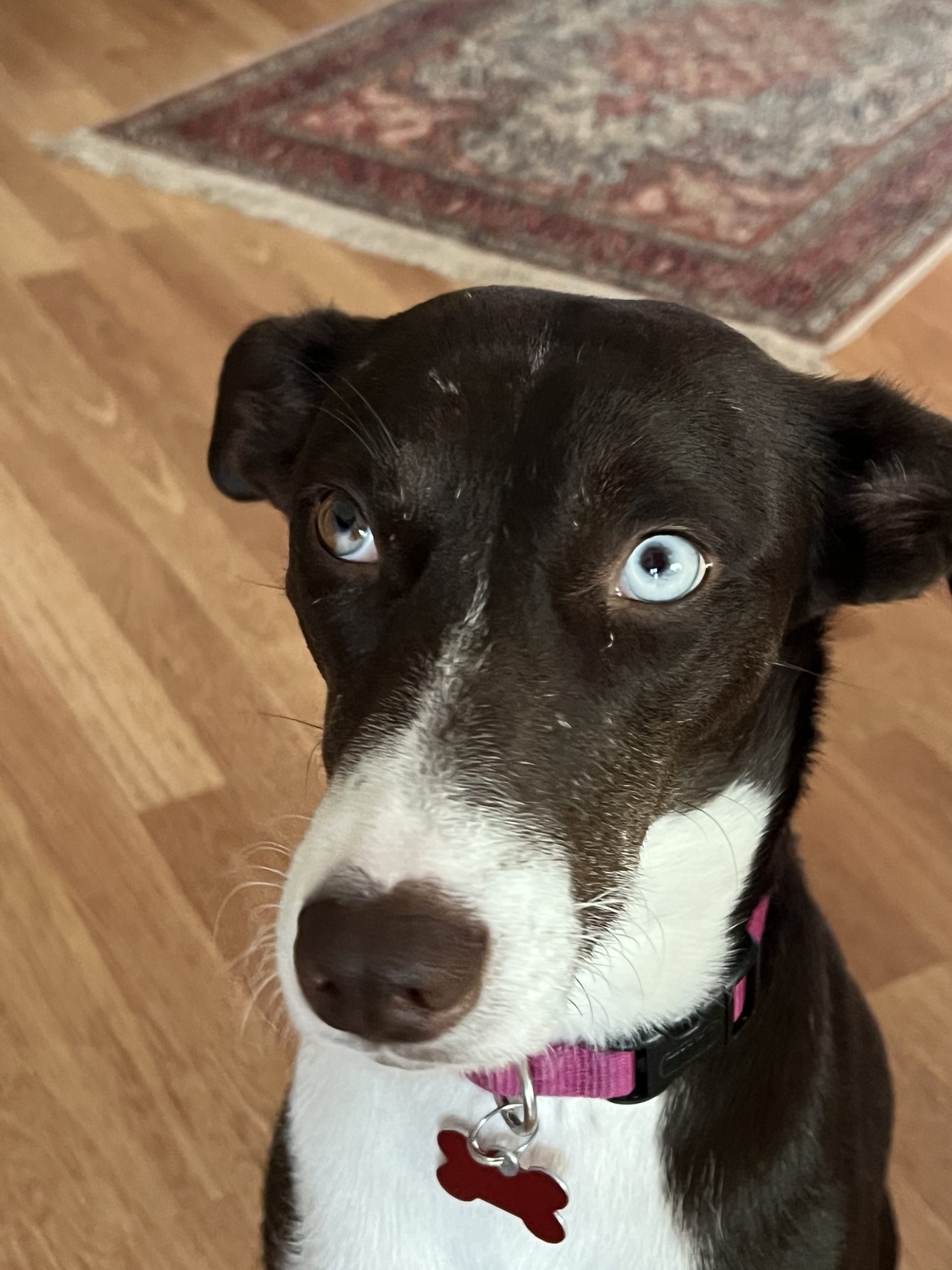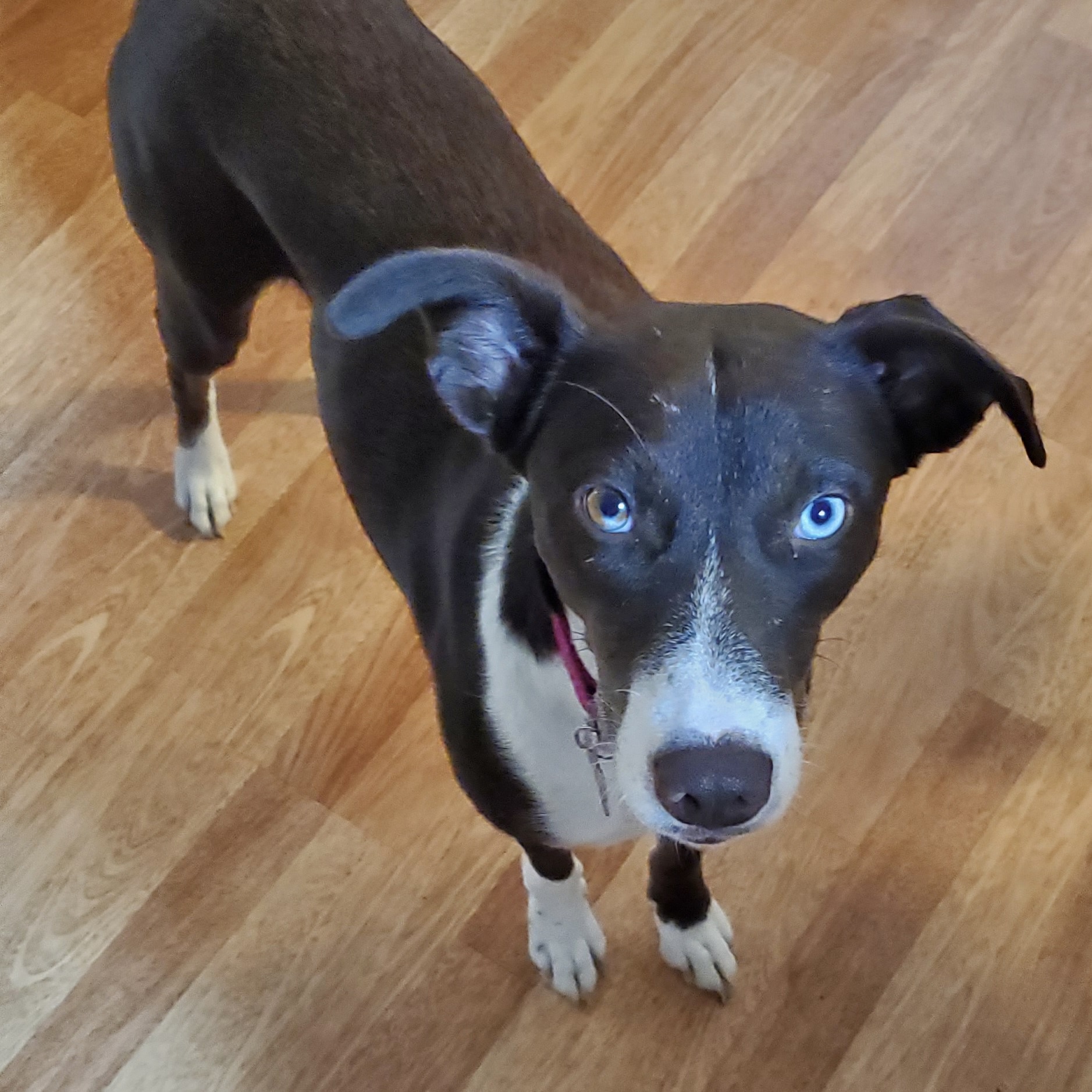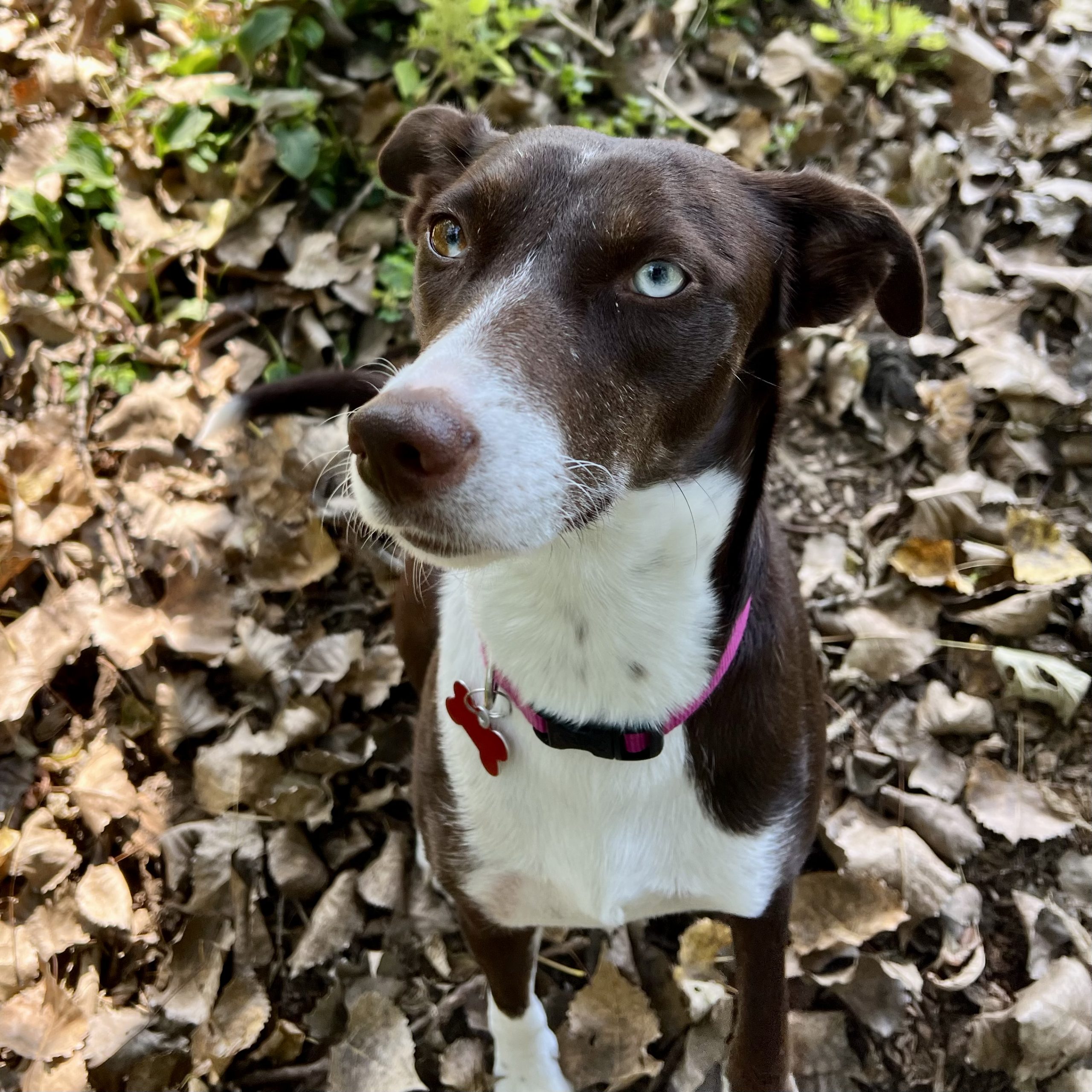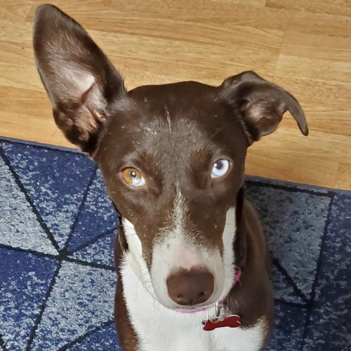 Hi, my name is Star. I am a 2.5-year-old female sweetheart. I am a medium-sized girl weighing about 30lbs. I am a happy girl who has met many other pups and humans (big and small) and I can tell you; I love them ALL! My tail seems to have a mind of its own and loves to wag and wag. I have to say, I think my unique eyes are my bestest, unique feature. I have one vibrant blue and one brown.