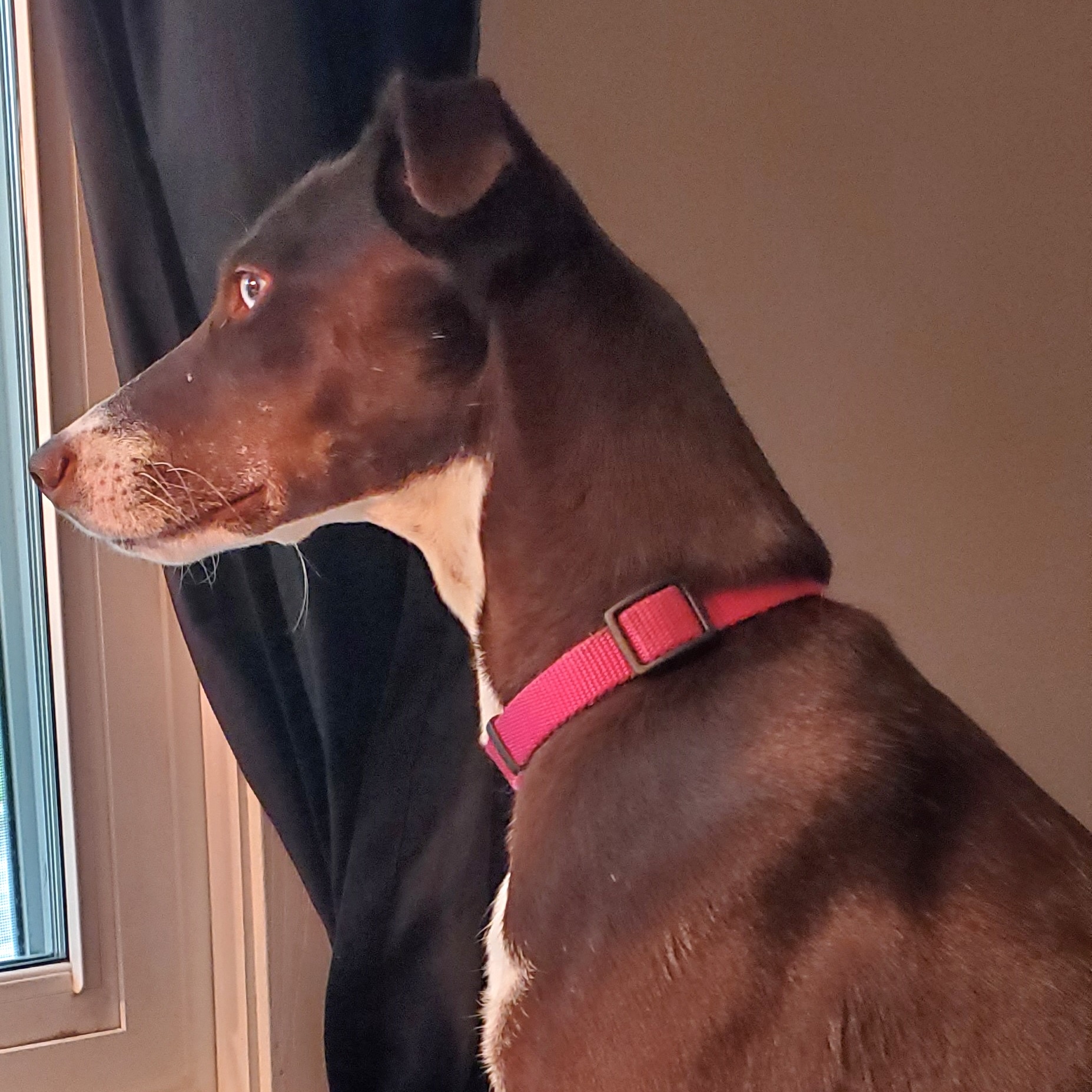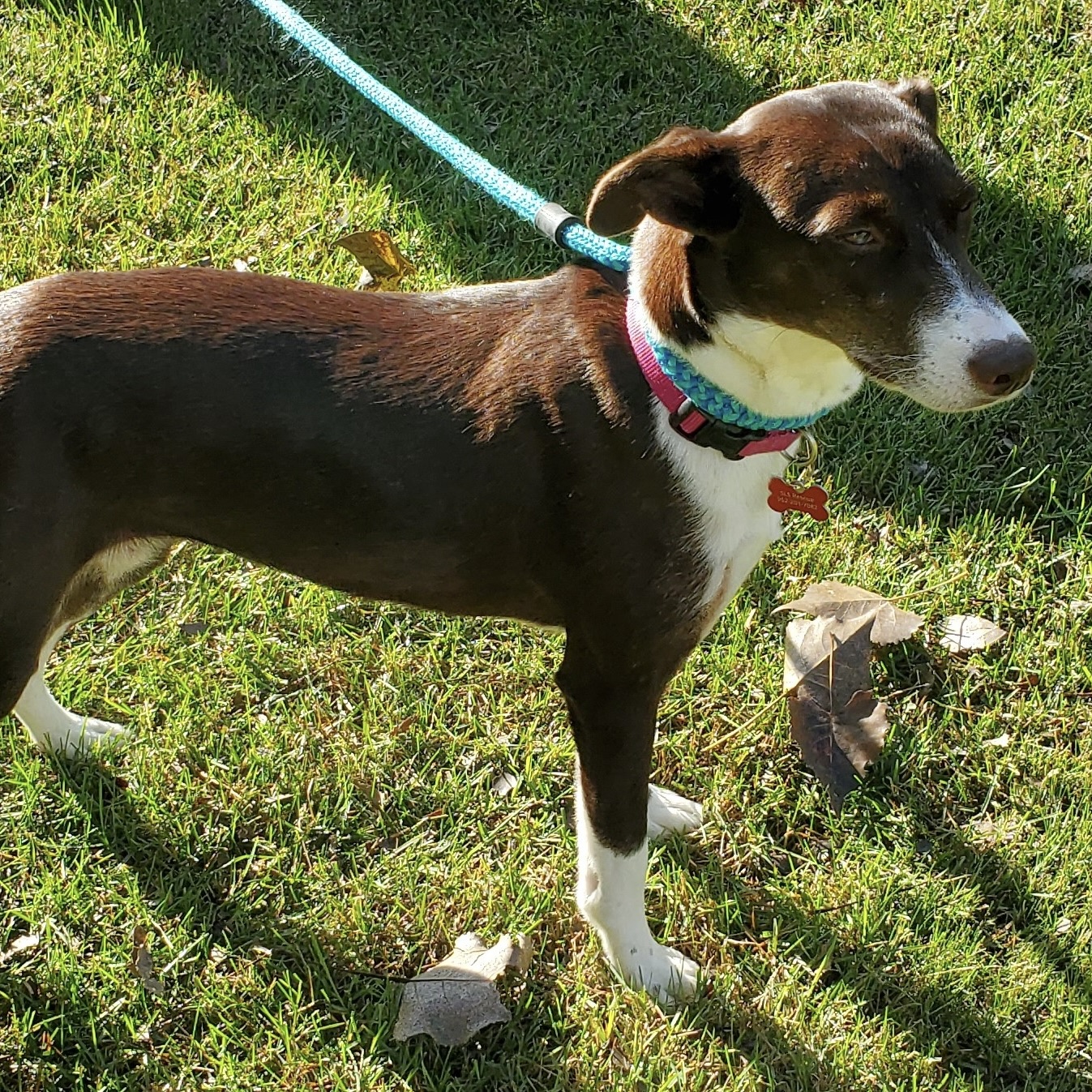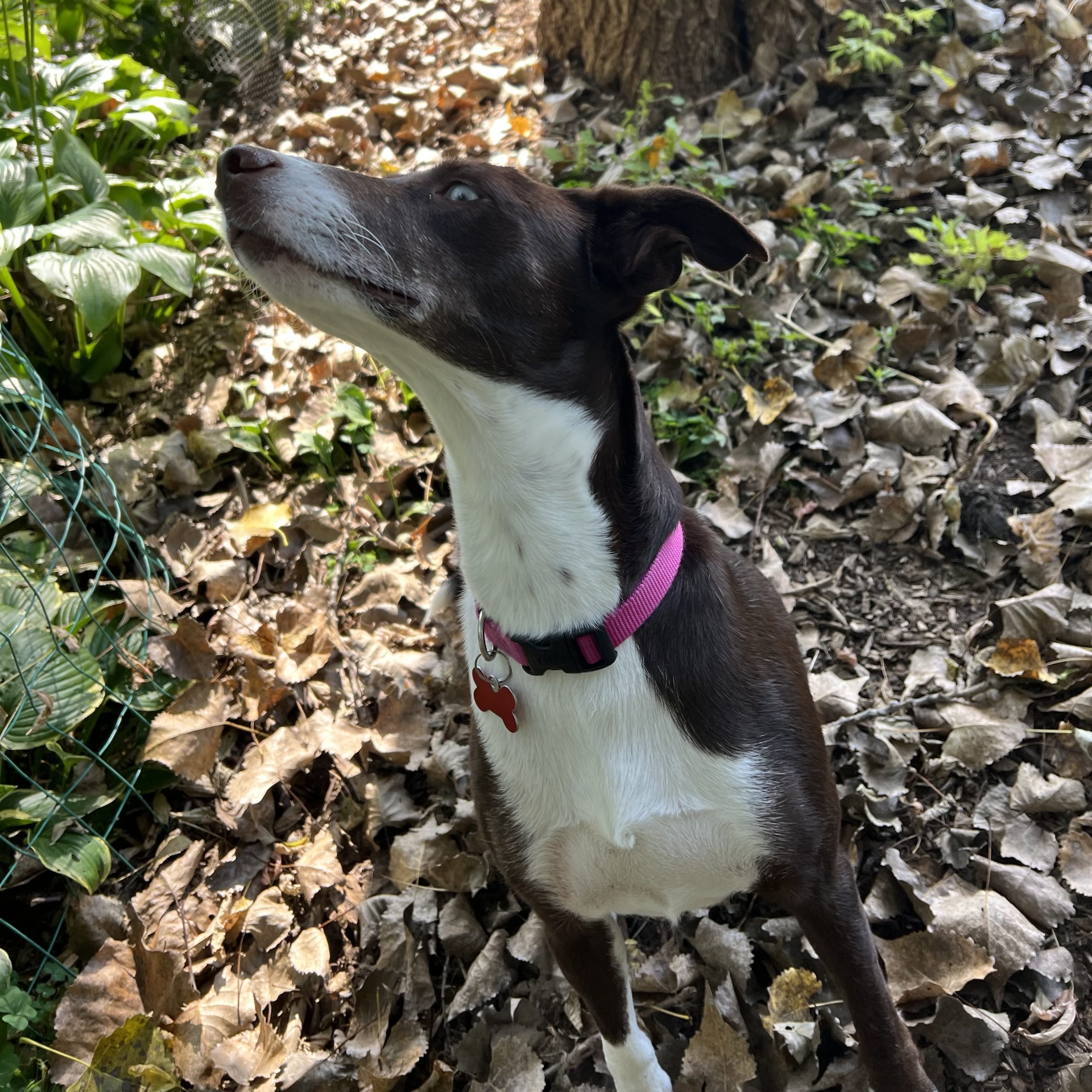 I am 100% potty trained and can stay home alone for hours at a time. My fosters don’t kennel me because I am such a well-behaved girl. I am very energetic and may have a bit of a hunting breed in me. I love to watch and “try to” catch squirrels and rabbits around the backyard. I take 3 to 4 walks a day and I am getting better each day on my lead leash. I may need a bit more training on leash as I said, I love those darn squirrels and rabbits, so I do tend to pull a bit. I already know the commands sit, down and working on shake. I am smart and pick up things quickly. I currently have a fenced yard where I can explore. I do think I prefer a fenced yard as I enjoy my outdoor freedom and love to romp around.
