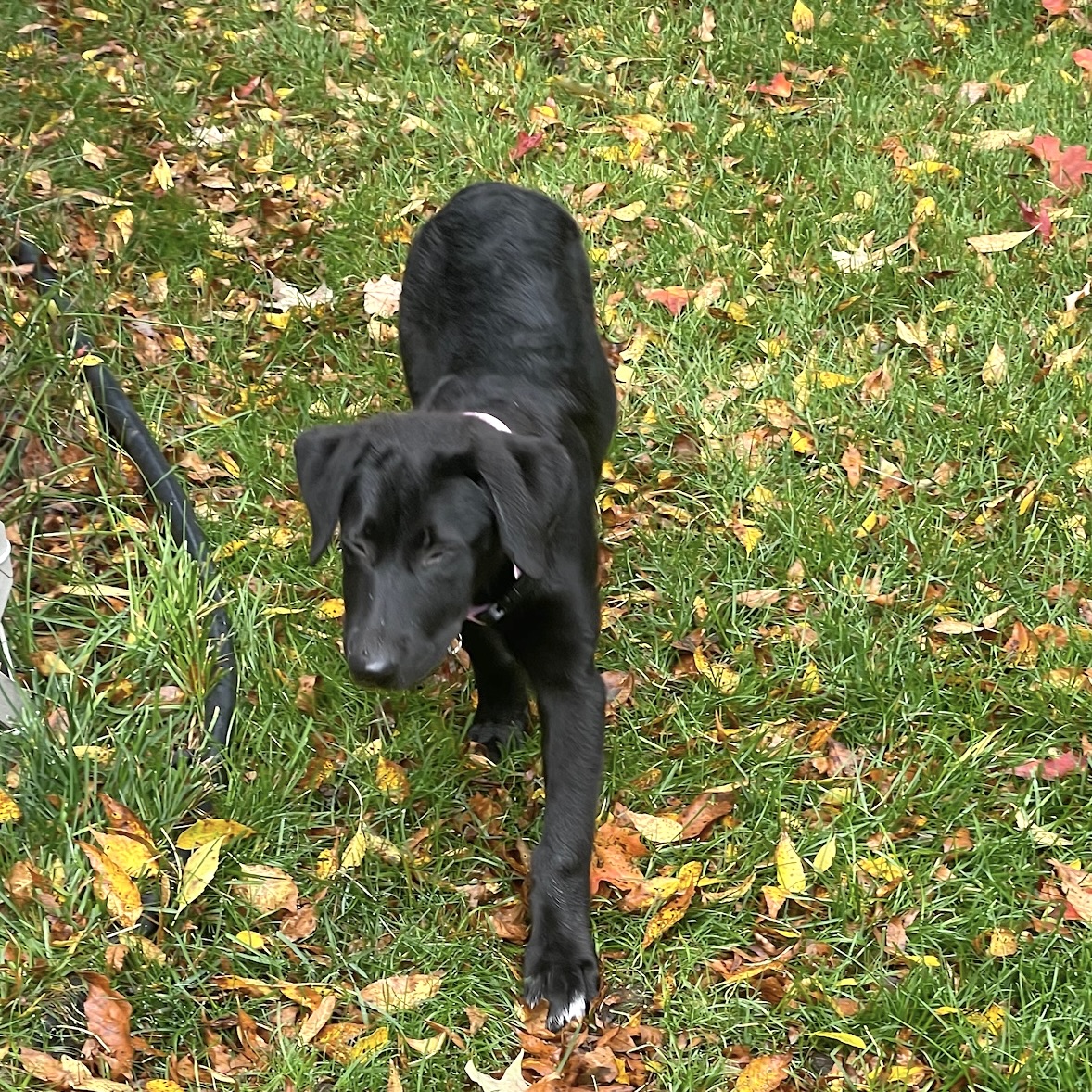 Winnie is a fun, social, curious, playful and snuggly puppy. She loves playing soccer, chasing balls and playing with her foster sisters. Winnie adores people and other dogs- she is playful with our younger dogs, respectful of the older ones. When it is time to relax, Winnie really enjoys a bone to chew on. Winnie walks well on a leash, working on crate training and is doing well with the potty training. She has really soft fur and the cutest white toes! Winnie is a world class cuddler. Winnie is excited to find an active home that is ready to an adventure buddy! Winnie is a great mix of playful, social and affectionate. Come meet and fall in love with Winnie as soon as you can!