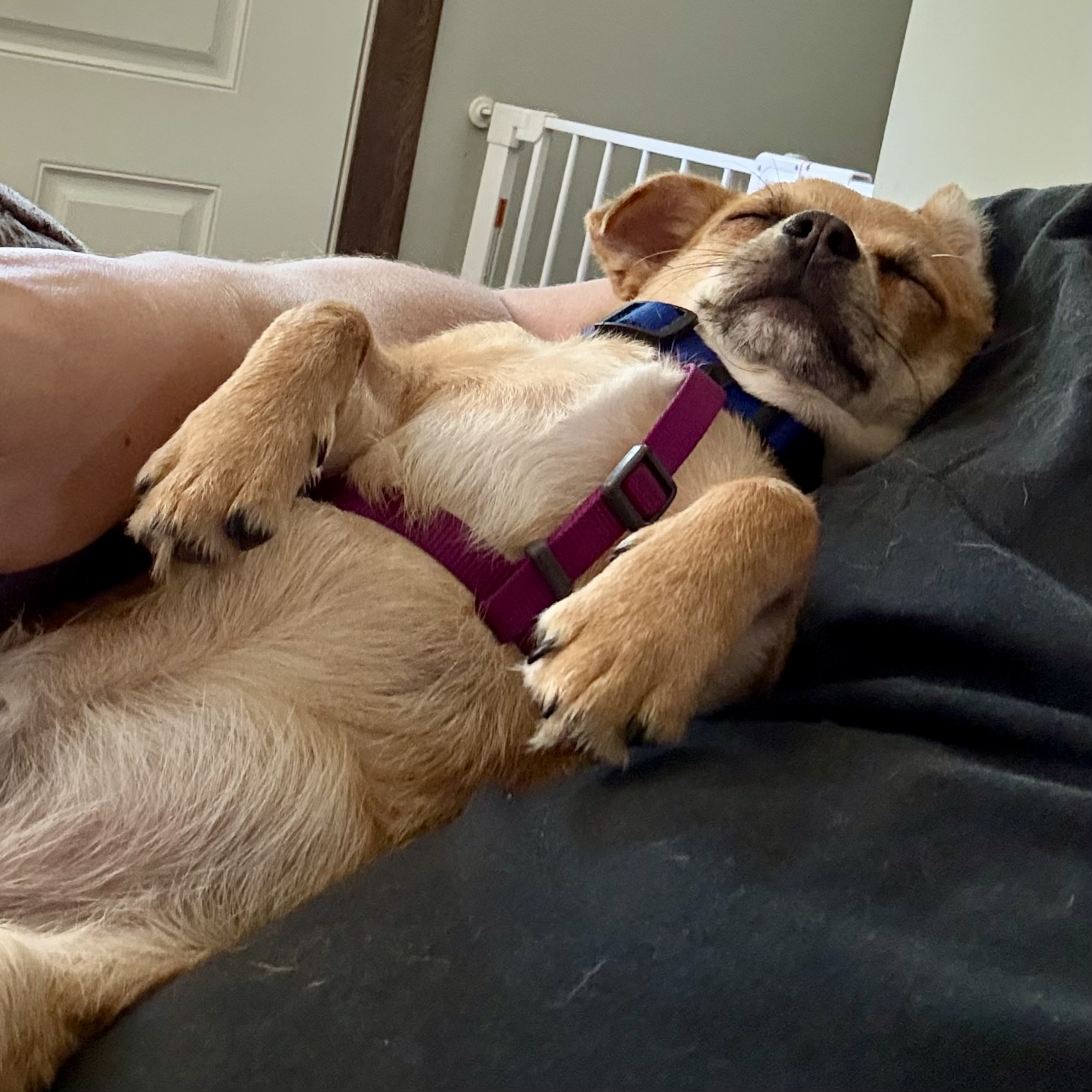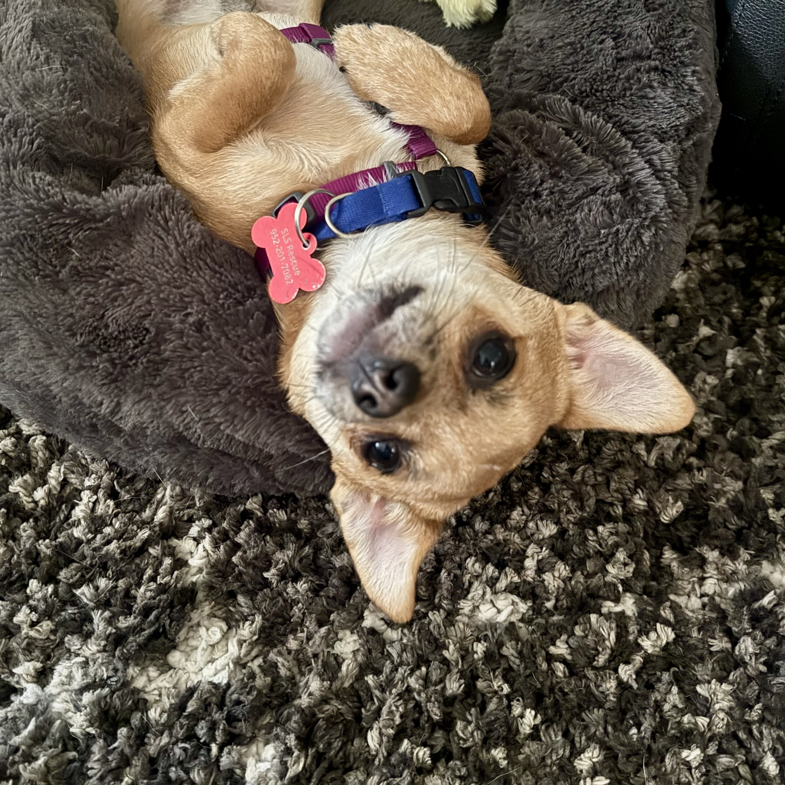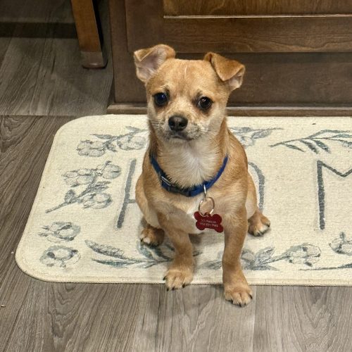 My foster parents say I’m a goofy, silly, and a fun guy. I love snuggling up in a cozy bed or the humans laps. I’m getting better at sharing toys and eating. It was a bit of a challenge at first since I shared a house with so many furry friends in my first home. They also say I’m a super sweet and affectionate little fella, and I still have a ton of puppy energy. I get along swimmingly with my foster sister, who’s a smaller Chihuahua. She’s so patient with me and is teaching me all the essential things like potty training, playing, and how to relax and snuggle on my foster parents’ laps. We love running around in the backyard and chasing each other.