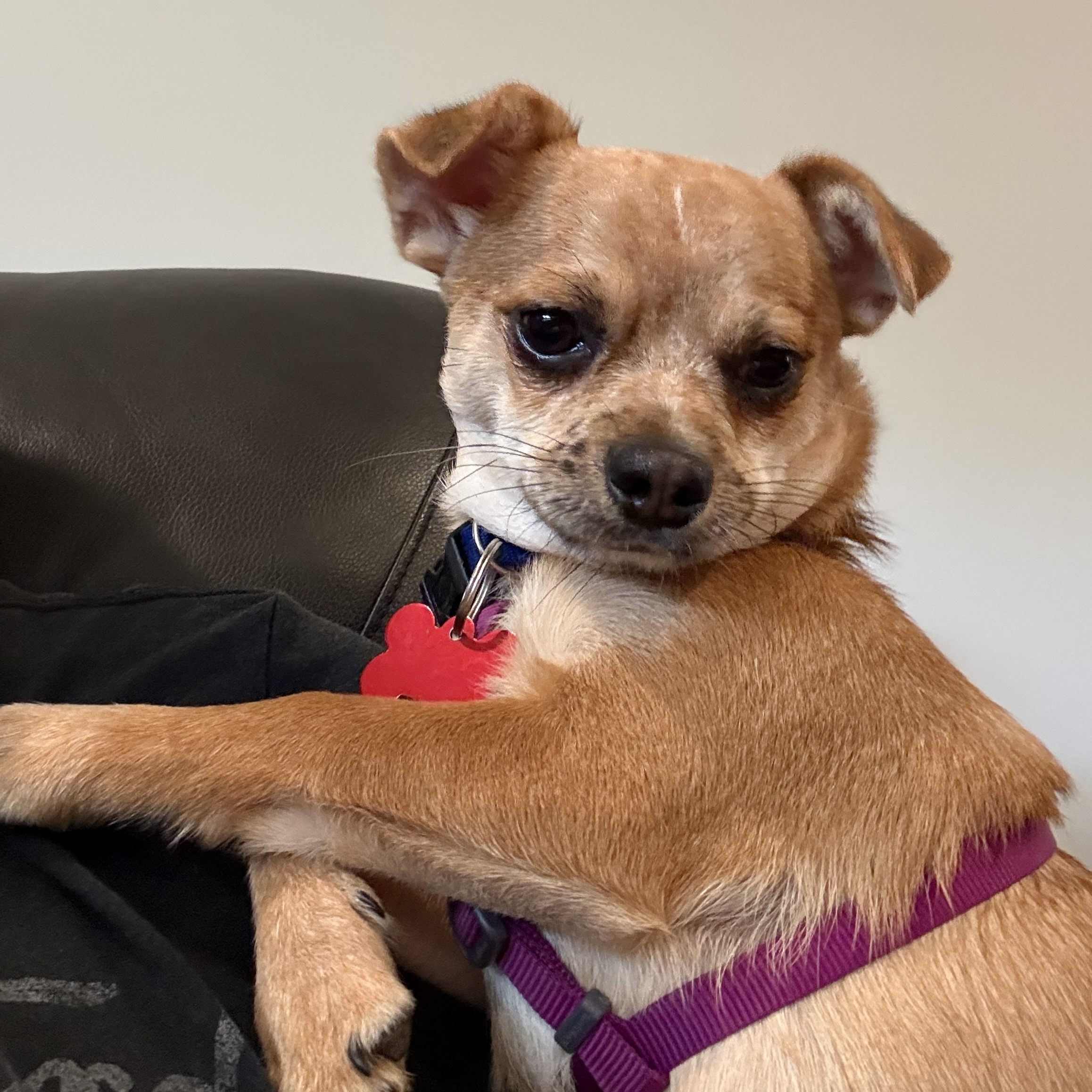 I’m a charming little Chi and I had a bit of a bumpy start in life, but I’m bouncing back! I embarked on a new adventure at the end of August, and I’ve been living with some incredible foster parents and a furry sister. The vet reckons I’m around 7 months old.